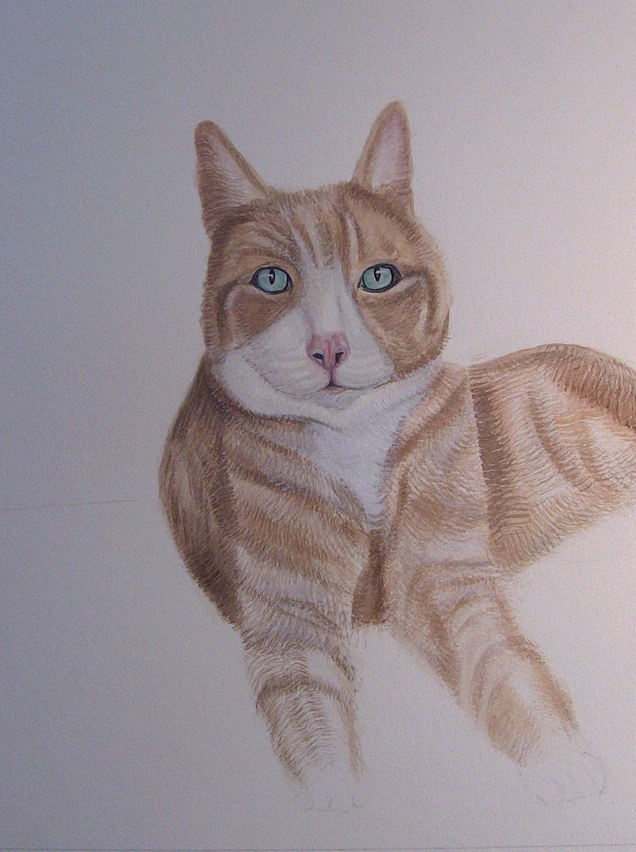 I have no idea why I have been given “cats” as subjects to draw lately? This watercolor is in progress, I need to add realistic details. The problem is I have been given blurry pictures! Awe.