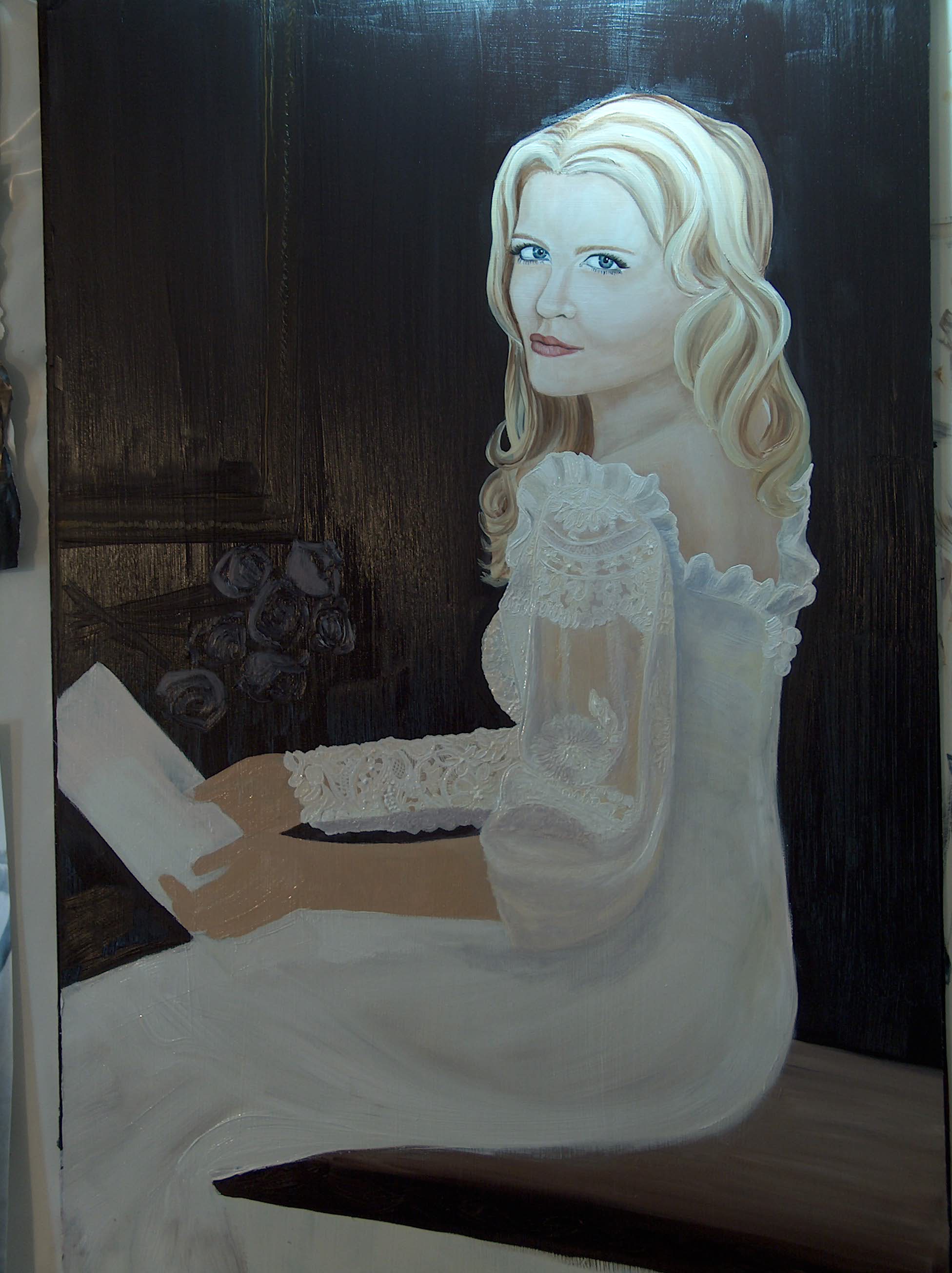 I painted to this point. But, I realized that I didn’t like it because I wasn’t seeing the realism I wanted. I am looking for form to start coming forth in space and depth. I started to add a purple hue to start to create forms.