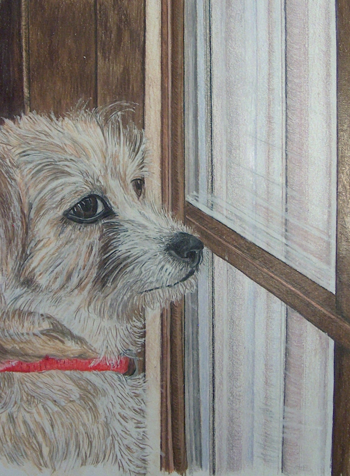 So reaistic that you want to go and hug him. Such sad feelings from a dog missing its master. Beautiful picture. Pulls at my heartstrings because I have a dog, too.