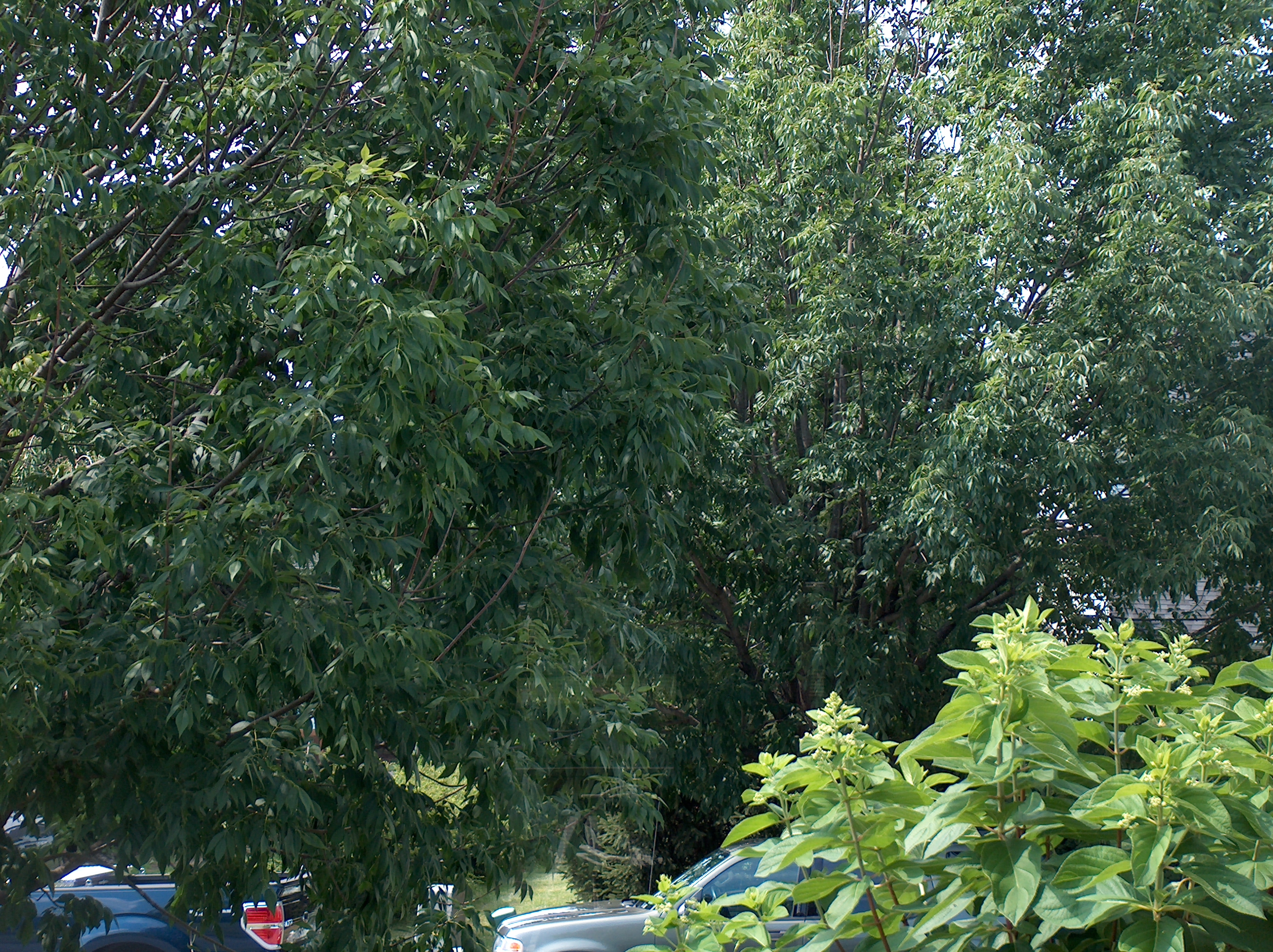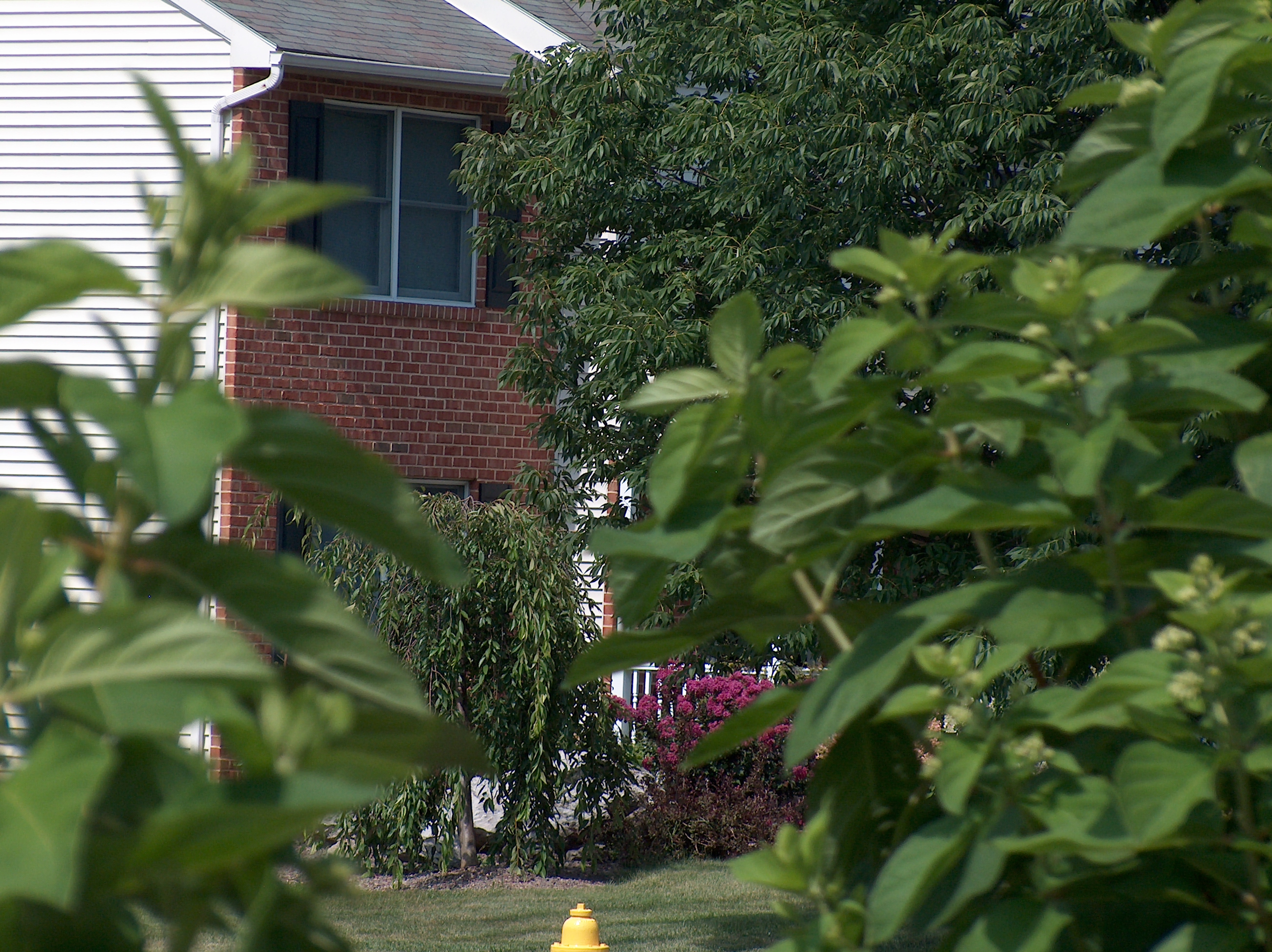 If you were to take five leaves off this Hydrangea tree and lay them next to each other on the table the leaves would be the same color. True? Notice how the color changes with the position-depth of the leaf in the center of the bush/tree. The color changes because of the way the light hits that particular leaf-leaves. Leaves with more sun light have a warmer color and tone, more yellow color to the base color. The inside leaves are cooler in tone and not in focused as the fore ground leaves.