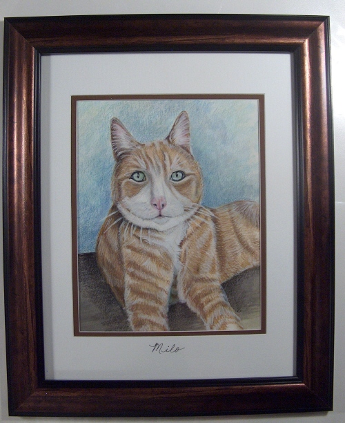 This is Milo a 23 year old cat. Milo is an old family beloved kitty with a lovely spirit. I did not want to paint him as his pictures appeared as an older cat, but a vibrant healthy loving member of the family.