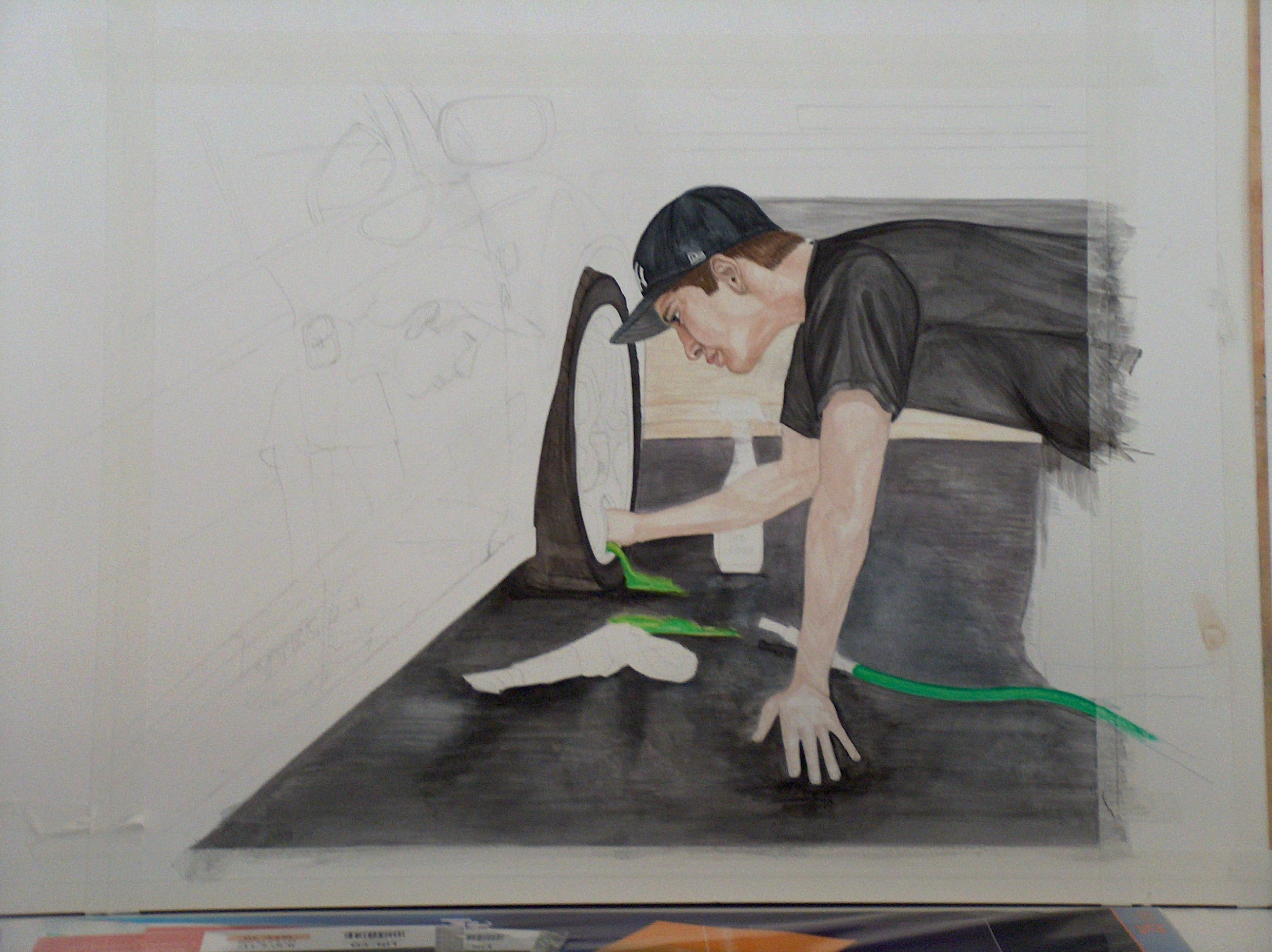 Remember the Light source in every composition in any medium you work with. Complete flesh tones through out with consistency is key. Looking at where the light is coming from and how the light changes and affects tones. If you are not sure then set up a Still Life to help aid you. mannequins are wonderful for this purpose; if that isn’t an option for you then ask a friend or family member to sit for a little time. Take pictures as reference to help guide you in the process.