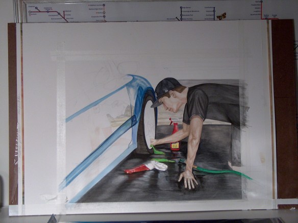 This is how far I have been able to paint to. This is a large oil painting that I am not in a hurry to finish. It is better to produce quality vs, quantity. Some students say to me, “You’re still working on this?” and my answer is I would rather like what I painted then never be satisfied or question my work at a later date. I have been very busy outside my studio and haven’t had the time window that I need to paint, so eventually there will be the time. My photography here isn’t as focused as I think it could be or my glasses aren’t strong enough! Anyway, the light I am now starting to put in is beautiful. Whom ever views this once hanging and takes the time to read the letter the painting will have so much more depth then just the title explanation.