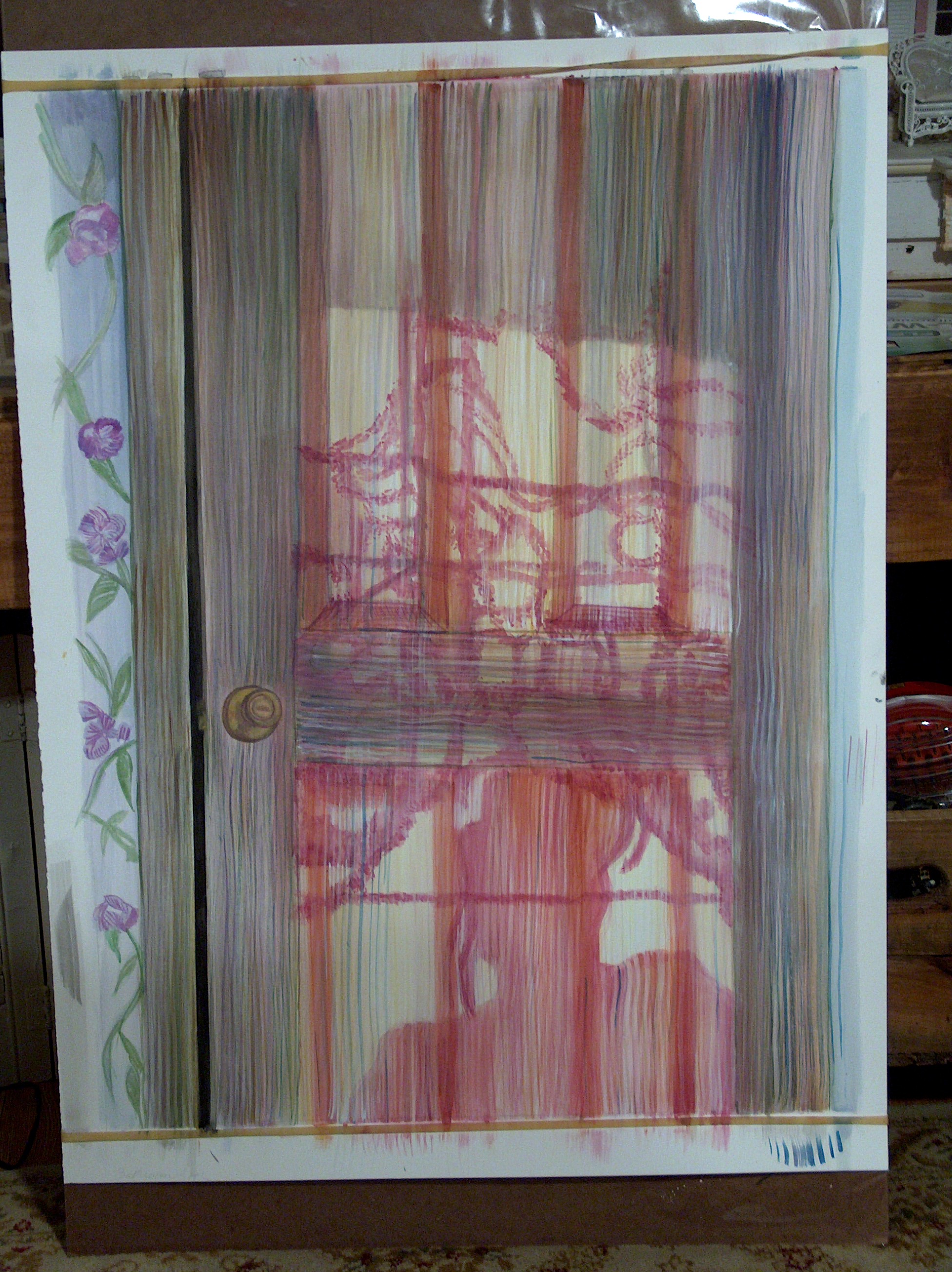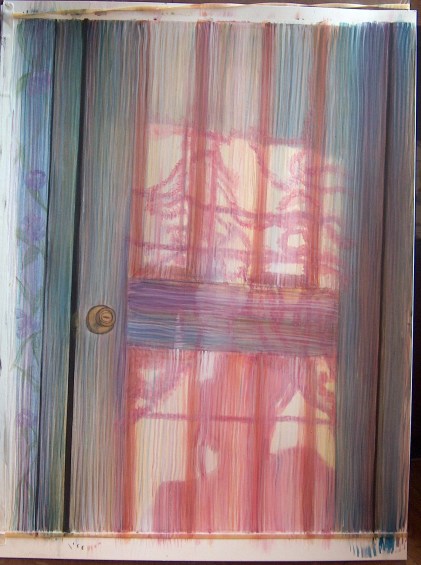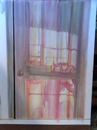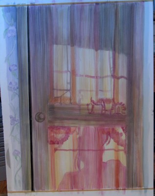 This color study has been a “Hoot” experimenting with color. I had an idea about what I wanted it to look like, but I really enjoy the colors and play on light. The colors are so more vivid in person. I have no idea why the colors here are not as bright as shown below. The size is a bit large for me as well, I usually paint wc in tight realism. I am not completely finished….I need to work up the door knob and detail a few things yet. But, for the moment I am going to sit this aside in my studio and just look at it for a while before I go back into it. The title will be “December shadow”. I looked to see if I could re-photograph this shot and the light and shadow are not there at this point in time. The angle of the sun changes the shadows. I took this picture in December, so the name is perfect..
