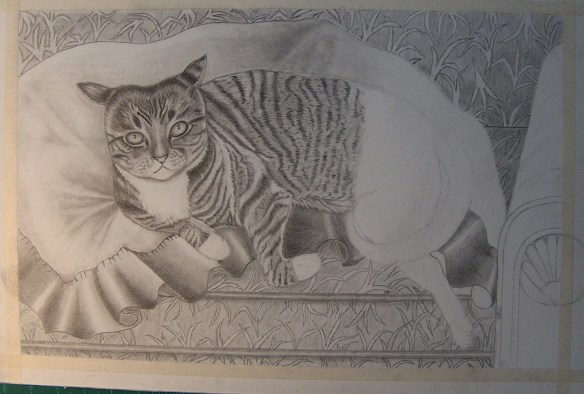 For the most part I will call this color pencil finished. I will sit it here in my studio and I am sure as I look at it I will add to it. 12 x 13.25″. I didn’t capture the realism I know that could be displayed in watercolour…..