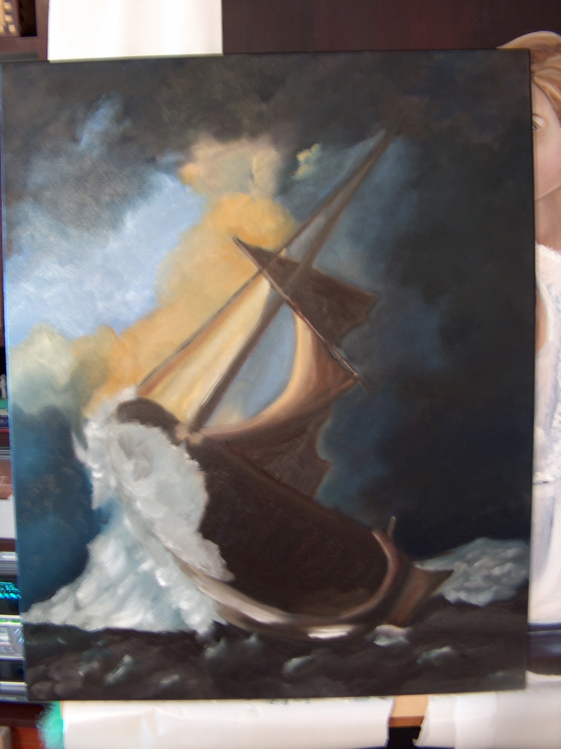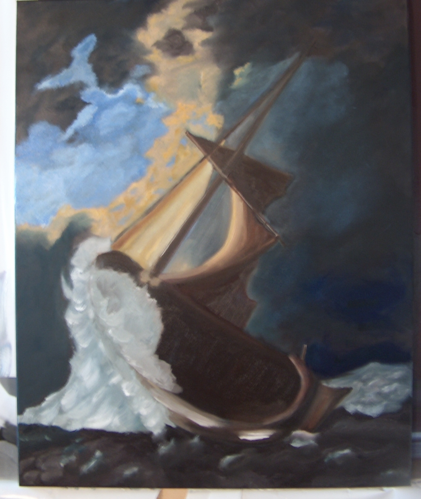 Remember the Light Source always! I can’t express enough the light source and how important it is. Always follow through in stroke, so the color is consistent and has purpose. Here the light source needs to follows through. How the light source hits or lands on the boat ans water.